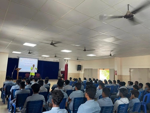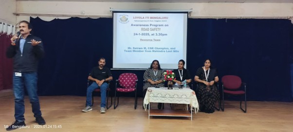 A Road Safety Awareness Program was held in the campus by Mr. Sriram M, CSR Champion, and his team from Mahindra Last Mile. The session focused on road safety, traffic rules, and safe practices, especially during the rainy season.