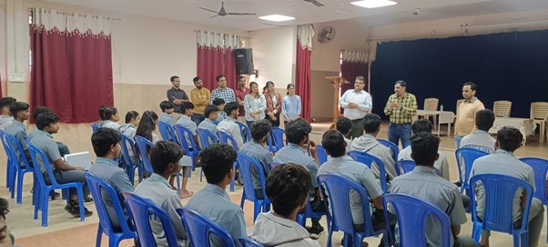 The team explained the dangers of wet roads, like reduced visibility and slippery surfaces. They gave simple tips, such as driving slowly, checking vehicle condition, keeping a safe distance, and using raincoats and helmets. All the students actively participated in the discussions and were encouraged to follow traffic rules to ensure their safety....