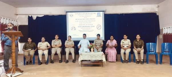 On 10th February 2025 Loyola ITI organized a Law Awareness Session in collaboration with the South Division Police, Bengaluru under the guidance of Sara Fathima IPS Deputy commissioner of police south division Bengaluru. The session was conducted by the nine-member Rani Chennamma Team, aiming to educate students and staff about critical legal issues and safety measures. The session covered essential topics, including emergency police contacts, the Protection of Children from Sexual Offences (POCSO) Act, cybercrime awareness, and the dangers of nicotine and drug abuse. The team provided the valuable information on the importance of staying vigilant and informed about legal rights a...